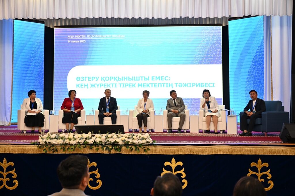 На пленарном заседании директор многопрофильной казахской школы-гимназии Аягозского района Абайской области Айгуль Канапьянова поделилась вдохновляющей историей успеха своей школы. Она рассказала, как благодаря сплочённой работе коллектива, родителей и учеников, начиная с 2022 года, когда учебное заведение стало опорным, удалось добиться значительных успехов.