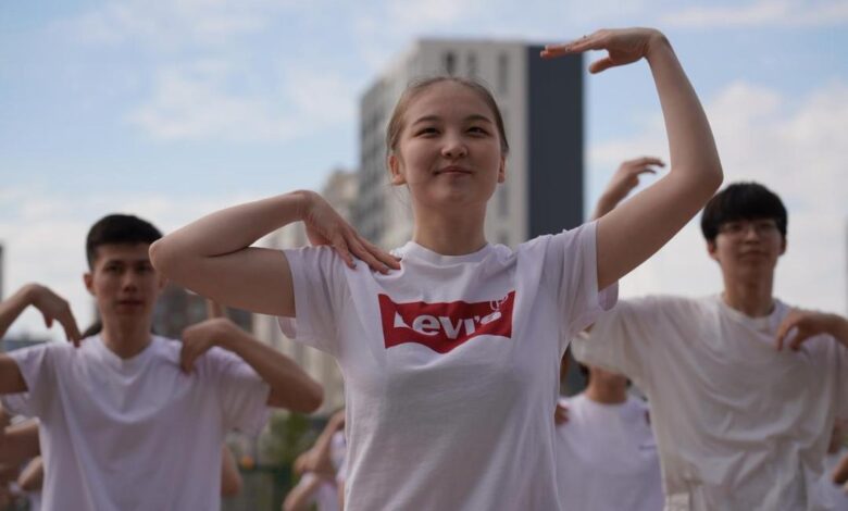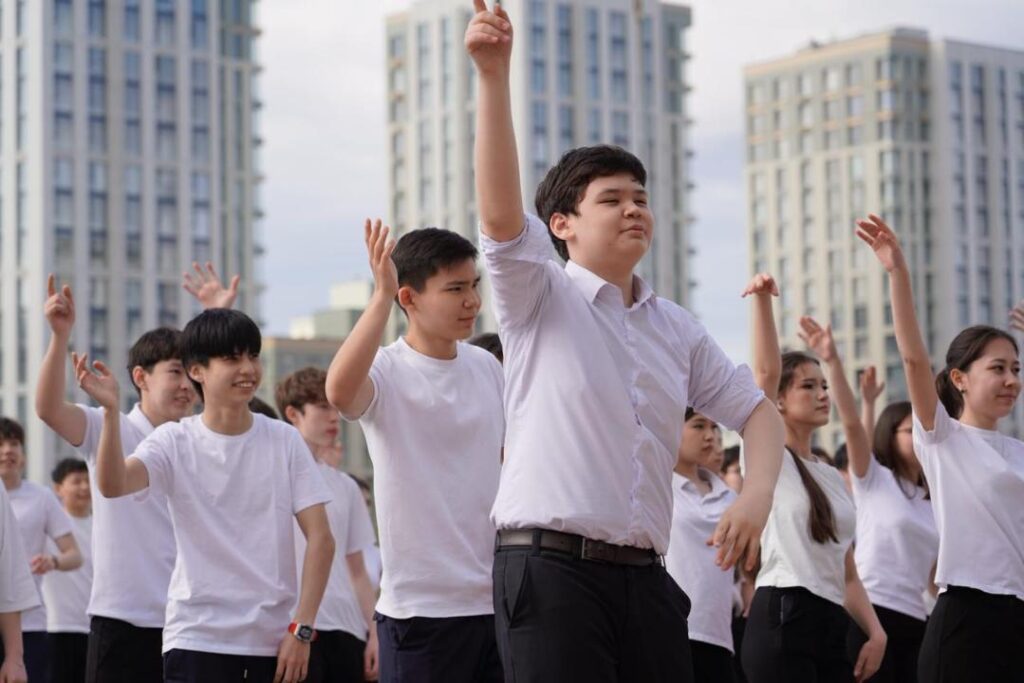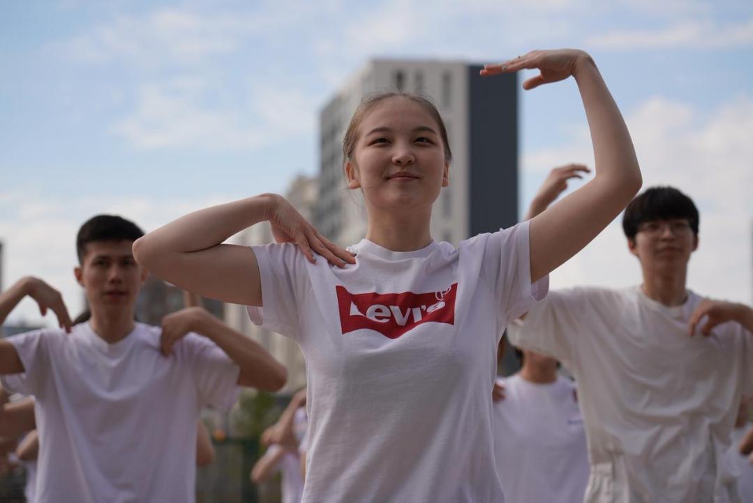 Бірыңғай флешмоб барысында оқушылар тазалық пен салауатты өмір салтын дәріптейтін түрлі спорттық би қойылымдарын қойып, ұжымдық әрекеттер ұйымдастырды.